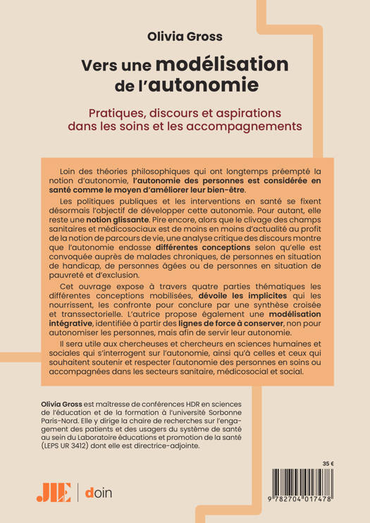 Il sera utile aux chercheuses et chercheurs en sciences humaines et sociales qui s’interrogent sur l’autonomie, ainsi qu’à celles et ceux qui souhaitent soutenir et respecter l'autonomie des personnes en soins ou accompagnées dans les secteurs sanitaire, médicosocial et social.