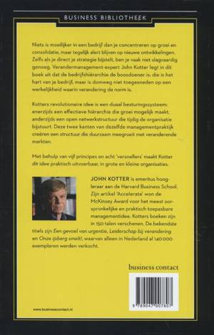 Met behulp van vijf principes en acht 'versnellers' maakt Kotter dit idee praktisch uitvoerbaar, in grote en kleine organisaties.