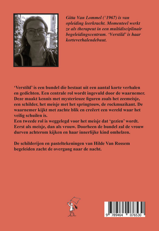 Gitta Van Lommel (°1967) is van opleiding leerkracht. Momenteel werkt ze als therapeut in een multidisciplinair begeleidingscentrum. ‘Verstild’ is haar korteverhalendebuut.