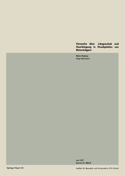 1.1 Allgemeines Bei dünnwandigen Plattenbalken- und Hohlkastenquerschnitten aus Stahlbeton ist die Bemessung der Druckplatten im Anschlussbereich zu den längsstegen ein noch ungelöstes Problem. Betrachtet man als einfaches Beispiel ein Element des Trägers gemäss Bild 1, so können in einem Schnitt I-I je nach der äusseren Belastung folgende Schnittgrössen auftreten: a) Längsschub allein Wirkt eine Belastung P in der Symmetrieebene des T-Trägers, so entsteht eine Längs- schubkraft T -d. yx b) Längsschub mit Querbiegung Wirkt ferner eine Belastung P ausserhalb des Steges, so entsteht zum Längsschub hin- zu ein Querbiegemoment M . (Die ebenfalls auftretende vertikale Schubkraft T -d q yx wird in der vorliegenden Untersuchung vernachlässigt.) c) Längsschub mit Querbiegung und Quervorspannung Ist die Platte in Querrichtung noch vorgespannt, so wirkt nebst Längsschub und Quer- biegung zusätzlich noch die Vorspannkraft V. Die Bemessung des Anschlussbereiches Platte - Steg bzw. die Berechnung der notwendi- gen Armierungen kann nach verschiedenen Modellen erfolgen. Diese führen indessen zu sehr unterschiedlichen und widersprüchlichen Resultaten. Daher wurden in den Jahren 1974 und 1975 am Institut für Baustatik und Konstruktion der ETH Zürich Versuche an insgesamt sieben Betonträgern durchgeführt (Bild 10). An zwei Trägern wurde das Pro- blem "Längsschub allein" erforscht (Bild 1B). Bei drei Trägern wurde zusätzlich eine Querbiegung aufgebracht (Bild 19). Die Ergebnisse dieser Versuche bildeten die Basis für die Prüfung von zwei weiteren Trägern, die in der Druckplatte die Beanspruchung "Längsschub mit Querbiegung und teilweiser Quervorspannung" aufwiesen.