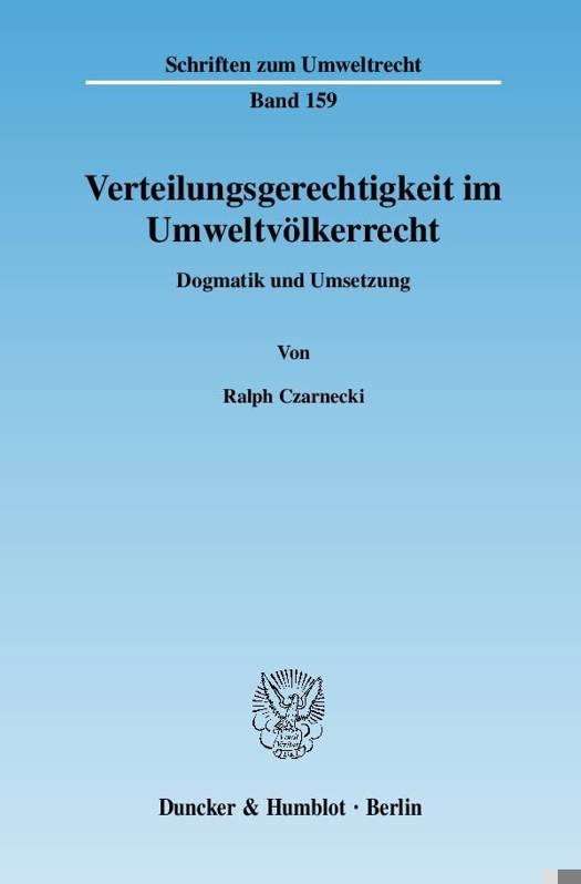 Ralph Czarnecki arbeitet die besonderen Schwierigkeiten für Dogmatik und Rechtsanwendung heraus, die das Völkerrecht als horizontale Rechtsordnung für die Verteilungsgerechtigkeit gerade von Umweltgütern aufwirft. Im ersten Kapitel werden die theoretischen Grundlagen der Arbeit bestimmt und die ideengeschichtliche Stellung der Verteilungsgerechtigkeit in Rechts- und Staatsphilosophie und den Wirtschaftswissenschaften untersucht. Im zweiten Kapitel lenkt der Verfasser den Blick auf das Umweltvölkerrecht und untersucht, welche Schwierigkeiten sich aus den Besonderheiten dieser Rechtsordnung und dieses Regelungsgegenstandes ergeben. Das dritte Kapitel beinhaltet konkrete Regeln des Umweltvölkerrechts auf räumliche Verteilungswirkungen sowie auf Kriterien der Verteilungsgerechtigkeit.