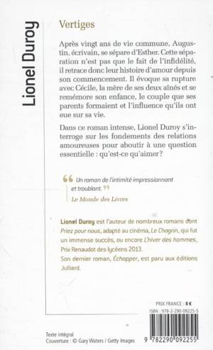 Après vingt ans de vie commune, Augustin, écrivain, se sépare d'Esther. Cette séparation n'est pas que le fait de l'infidélité, il retrace donc leur histoire d'amour depuis son commencement. Il évoque sa rupture avec Cécile, la mère de ses deux aînés, et se remémore son enfance, le couple que ses parents formaient et l'influence qu'ils ont eue sur sa vie.Dans ce roman intense, Lionel Duroy s'interroge sur les fondements des relations amoureuses pour aboutir à une question essentielle : qu'est-ce qu'aimer ?