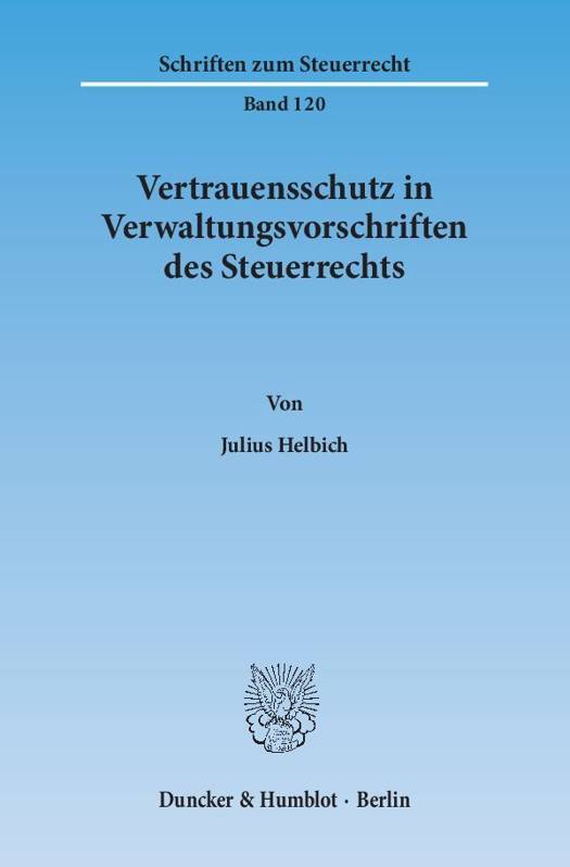 Zugleich Ein Beitrag Zum Besseren Verstandnis Der Wirkkraft Von Verwaltungsvorschriften Und Der Massgaben Des Vertrauensschutzprinzips Im Allgemeinen Und Fur Das Steuerrecht Im Besonderen
