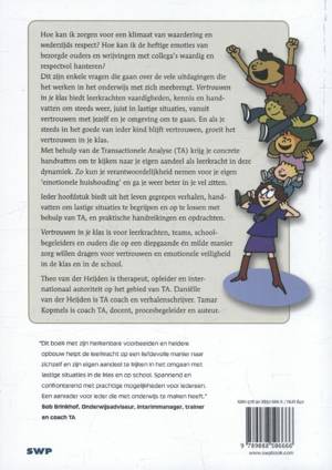 Een vertrouwensrelatie tussen kinderen en leerkrachten is de basis voor een veilig leerklimaat. Dit is het uitgangspunt van het boek "Vertrouwen in je klas."Centraal staan de psychologische processen die spelen in de interacties tussen leerkracht en kind, tussen leerkracht en ouders, tussen kinderen onderling en tussen leerkrachten onderling. Als leerkrachten meer zicht hebben op deze processen en bereid zijn hier bij zichzelf naar te kijken, kan het vertrouwen in zichzelf, het vertrouwen in de kinderen en het wederzijdse vertrouwen groeien.De basis voor de aanpak zijn inzichten uit de Transactionele Analyse (TA). Dit model is vertaald naar voor leerkrachten herkenbare thema’s als omgaan met onrust bij kinderen, schuld en schaamte, reddersgedrag van leerkrachten, onzekerheid van leerkrachten, omgaan met pesten en conflicten met collega’s en ouders. We werken in het boek steeds vanuit concrete casuïstiek. Ieder hoofdstuk start met een verhaal vanuit verschillende perspectieven: leerkracht, kind(eren), ouders, collega’s. Dit zijn uit het leven gegrepen verhalen op basis van waargebeurde ervaringen van leerkrachten en ouders, die Danielle van der Heijden tot leven brengt. Daar laten Theo van der Heijden en Tamar Kopmels dan de theorie van TA op los: Welke processen spelen hier? Hoe kun je belemmerende patronen doorbreken? Leerkrachten krijgen zo op een diepgaande én milde manier zicht op hun eigen mogelijkheden in dergelijke situaties. Dan biedt ieder hoofdstuk een 'contraverhaal': een visioen van hoe een lastige situatie zou kunnen transformeren als je vanuit vertrouwen naar jezelf en de ander kan kijken. Tot slot zijn er rond elk thema praktische handreikingen, opdrachten en bemoedigingen om de leerkracht een hart onder de riem te steken. Bij ieder thema kan bovendien ondersteunend materiaal worden gedownload.