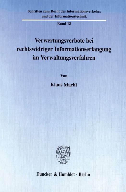 Angesichts der praktischen Bedeutung der Frage, ob Informationen, die Verwaltungsbehörden unter Verstoß gegen gesetzliche Bestimmungen erlangt haben, verwertet werden dürfen, verwundert es, daß die Problematik im Verwaltungsrecht bislang nur wenig Beachtung gefunden hat. Dies steht ganz im Gegensatz zu anderen Rechtsgebieten, insbesondere zum Strafprozeßrecht, wo die Frage seit langer Zeit intensiv diskutiert wird.So ist auch Ausgangspunkt der Arbeit die Auswertung des Erkenntnisstandes in den Rechtsgebieten, die insoweit einen gewissen Diskussionsvorsprung aufweisen. Dabei läßt sich feststellen, daß auch dort noch kein befriedigender Lösungsansatz, der sich auf das Verwaltungsverfahren übertragen ließe, gefunden werden konnte.Auch eine Analyse der vereinzelten einfachgesetzlichen Regelungen der verwaltungsrechtlichen Informationsverwertung zeigt, daß sich ihnen überwiegend keine Aussagen über die Verwertbarkeit rechtswidrig erlangter Informationen abgewinnen lassen.Es bedarf vielmehr einer Untersuchung der verfassungsrechtlichen Hintergründe der Informationsverwertung. Dabei zeigt sich, daß die Verwertung einen eigenständigen Eingriff in das Grundrecht auf informationelle Selbstbestimmung (und u. U. auch in speziellere Grundrechte wie Art. 10 oder 13 GG) darstellt, der in bestimmtem Umfang im Wege einer verfassungskonformen Auslegung der einschlägigen datenschutzrechtlichen Nutzungsbestimmungen gerechtfertigt werden kann.Unter besonderer Beachtung des Verhältnismäßigkeitsgrundsatzes läßt sich auf diese Weise eine Verwertungsregelung formulieren, welche sowohl die staatlichen Schutzpflichten, die, soweit es um den Schutz von gewichtigen Individualrechtsgütern geht, für die Verwertbarkeit streiten, als auch das informationelle Selbstbestimmungsrecht des von der Informationsverwertung Betroffenen in einen angemessenen Ausgleich bringt.Abschließend geht Klaus Macht noch auf einige Einzelfragen wie etwa die Reichweite und Wirkung der so gefundenen Verwertungsverbote ein.