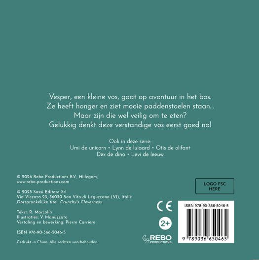 Vesper, een kleine vos, gaat op avontuur in het bos. Ze heeft honger en ziet mooie paddenstoelen staan… Maar zijn die wel veilig om te eten? Gelukkig denkt deze verstandige vos eerst goed na!