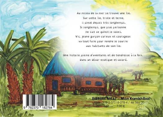 Au milieu de la mer se trouve une île. Sur cette île, triste et terne, il pleut depuis très longtemps. Si longtemps, que plus personne ne sait ce qu'est le soleil. Vic, jeune garçon curieux et courageux va tout faire pour rendre le sourire aux habitants de son île. Une histoire pleine d'aventures et de tendresse à la fois, dans un décor exotique et coloré.