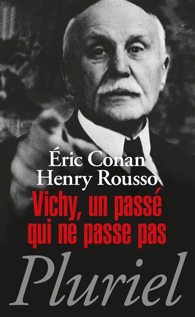 Éric Conan Henry Rousso Vichy, un passé qui ne passe pas Nouvelle édition mise à jour et augmentée « En vingt ans, la mémoire de Vichy a changé à la fois d’échelle et de nature. Elle n’est plus matière à d’interminables controverses. Elle a fait, au contraire, l’objet d’un investissement considérable de la part de l’État, des associations, de l’opinion en général. Le problème public qui émerge du début des années 1990 de manière conflictuelle, et que nous essayions alors de comprendre, a débouché sur de véritables politiques publiques de mémoire, qui ont à leur tour lancé d’autres débats. Ces politiques, elles-mêmes conséquence d’une profonde évolution des esprits, ont transfiguré la manière de voir les années 1940-1944 et sans doute ouvert une nouvelle étape du “syndrome de Vichy”. Notre livre a participé de ces changements. Son titre, repris depuis comme un leitmotiv, est devenu une expression du sens commun. Peut-être – mais c’est au lecteur d’en juger – notre propos avait-il anticipé les risques d’un usage abusif du “devoir de mémoire” dont on a pu observer les manifestations répétées ces dernières années, moins à propos de l’héritage de Vichy que des souvenirs conflictuels d’autres épisodes traumatiques de l’histoire récente. »