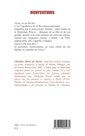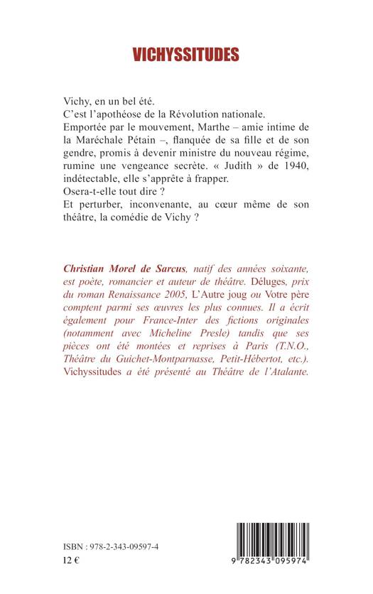 Vichy, été 1940. En pleine apothéose de la Révolution nationale, Marthe, intime de la Maréchale Pétain, et intégrée à dessein à ce mouvement politique, cherche à accomplir sa vengeance. Habile, indétectable, elle s'apprête à frapper. Franchira-t-elle le pas ? Aura-t-elle le courage de s'élever, apparemment seule, contre cette grande tragie-comédie qu'est Vichy ? Une pièce haletante.