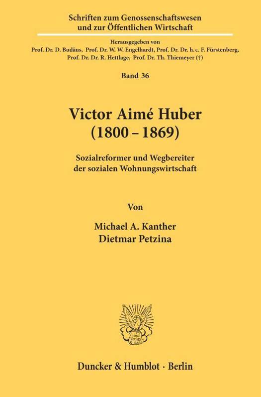 Mit der vorliegenden Biographie soll der Wegbereiter der sozialen Wohnungswirtschaft und Begründer der Wohnungsbaugenossenschaften und Wohnungsgesellschaften wieder in Erinnerung gerufen werden. Die Autoren spannen einen Bogen von der Darstellung der Zeit Hubers, über die Stationen seines Lebens und Werks bis hin zu der heutigen Wirkung seines Schaffens.Als Kind aufklärerischer Eltern hatte Huber während seiner Reisen nach England zu einem positiven Verhältnis zur Industrialisierung gefunden. Es wuchs die Überzeugung, durch Veränderung der äußeren Lebensumstände die sittliche Erziehung und Verbürgerlichung der Arbeiter zu begünstigen. Sein Drang zur sozialen Praxis ließ den Theoretiker und politischen Publizisten vom konkreten sozialen Elend ausgehen, um durch Modelle (mit fremder Starthilfe Selbsthilfe unterstützen, beispielsweise kombinierte Siedlungs- und Konsumgenossenschaften) eine Problemlösung herbeizuführen. Dabei verband er ökonomische und soziale Realität mit konservativem Gedankengut und christlicher Lehre.Victor Aimé Huber ist aus dem kollektiven Gedächtnis verschwunden. Zum 200. Geburtstag sollen der »ganze« Huber - Werk und Mensch - und seine großen Verdienste um das Genossenschafts- und Wohnungswesen wiederentdeckt werden.