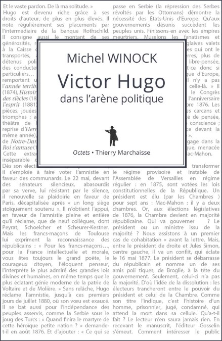 MICHEL WINOCK RETRACE DANS CE LIVRE l’itinéraire politique de Victor Hugo, né dans une famille royaliste, chantre des ultras catholiques dans sa jeunesse, progressivement converti à la République, farouche opposant à la peine de mort, défenseur des miséreux, cherchant à son retour d’exil à effectuer une médiation entre la Commune et le gouvernement bourgeois.