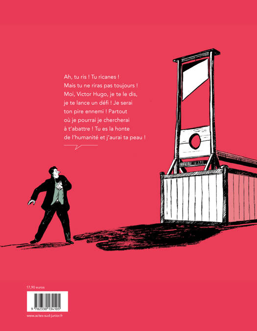 La plume de Murielle Szac s'associe au talent de l'illustrateur Sébastien Vassant et à son trait précis. Fidèle à l'angle d'approche choisi dans le roman, cette adaptation nous plonge au coeur du combat acharné que Hugo mena contre la peine de mort, le combat de toute une vie. Choqué dès l'enfance par le sort réservé aux condamnés à mort, Victor déclare très tôt la guerre à la guillotine. Cet assassinat légal le révulse et l'on suit son engagement, jusqu'à l'obsession, pour vaincre cette monstruosité. Des illustrations puissantes, ponctuées par des dialogues stupéfiants entre la guillotine et l'écrivain, nous dévoilent aussi sa tendresse, sa fragilité, sa passion, et incitent le lecteur à partager la brûlante actualité de son combat.