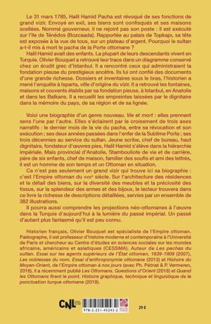 Le 31 mars 1785, Halil Hamid Pacha est revoque de ses fonctions de grand vizir. Envoye en exil, ses biens sont confisques et ses maisons scellees. Nomme gouverneur, il ne rejoint pas son poste: il est execute sur l'ile de Tenedos (Bozcaada). Rapportee au palais de Topkapi, sa tete est exposee a la vue de tous, sur un plateau d'argent. Pourquoi le sultan a-t-il mis a mort le pacha de la Porte ottomane ? Halil Hamid avait des enfants. La plupart de leurs descendants vivent en Turquie. Olivier Bouquet a retrouve leur trace dans un diagramme conserve chez un erudit grec d'Istanbul. Il a rencontre ceux qui administraient la fondation pieuse du prestigieux ancetre. Ils lui ont confie des documents d'une grande richesse. Dossiers et inventaires sous le bras, l'historien a mene l'enquete a Isparta, ville d'origine du vizir. Il a retrouve les fontaines, maisons et couvents etablis par sa fondation pieuse, a Istanbul, en Anatolie et dans les Balkans. Il a recueilli les empreintes laissees par le dignitaire dans la memoire du pays, de sa region et de sa lignee. Voici une biographie d'un genre nouveau. Vie et mort elles prennent sens l'une par l'autre. Elles s'eclairent par le croisement de trois axes narratifs: le dernier mois de la vie du pacha, entre sa revocation et son execution; ses deux annees passees dans l'enfer de la Sublime Porte; ses trois decennies au service du sultan. Jeune scribe, chef de bureau, haut dignitaire, fondateur d'oeuvres pies, Halil Hamid s'eleve dans la hierarchie imperiale. Mais provincial d'Anatolie, Stambouliote de vie et de carriere, pere de six enfants, chef de maison, familier des soufis et ami des lettres, il est un homme de son temps et un Ottoman en situation. Ce n'est pas seulement un grand vizir qui trouve ici sa biographie: c'est l'Empire ottoman du XVIIIe siecle. Sur l'architecture des residences et le detail des biens, sur la diversite des meubles et la preciosite des tissus, sur la splendeur des armes et des bijoux, le lecteur trouvera dans ce livre la richesse de descriptions detaillees, servies par un ensemble de 382 illustrations. Il pourra aussi comprendre les projections neo-ottomanes a l'oeuvre dans la Turquie d'aujourd'hui a la lumiere du passe imperial. Un passe d'autant plus fantasme qu'il est peu connu.