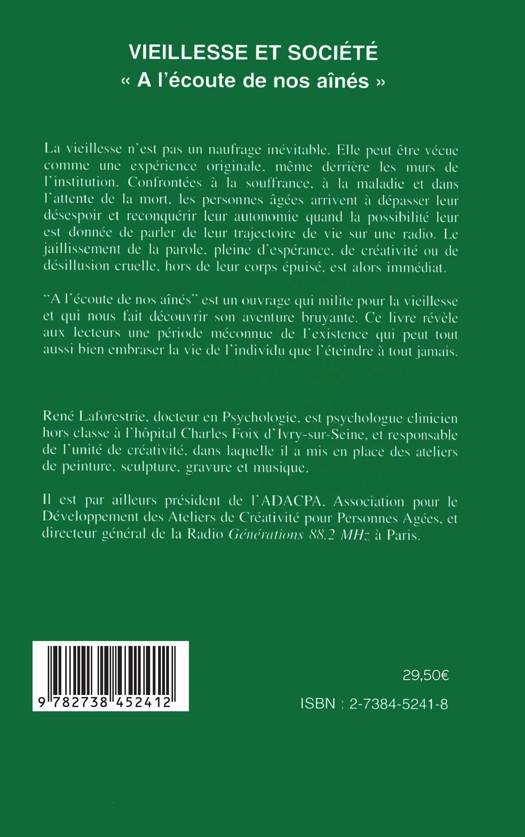 La vieillesse peut être vécue comme une expérience originale, même derrière les murs de l'institution. Confrontés à la souffrance, à la maladie et dans l'attente de la mort, les personnes âgées arrivent à dépasser leur désespoir et reconquérir leur autonomie quand la possibilité leur est donnée de parler de leur trajectoire de vie sur une radio. Le jaillissement de la parole, pleine d'espérance, de créativité ou de désillusion cruelle, hors de leur corps épuisé, est alors immédiat. Ce livre milite pour la vieillesse, et nous fait découvrir son aventure bruyante.