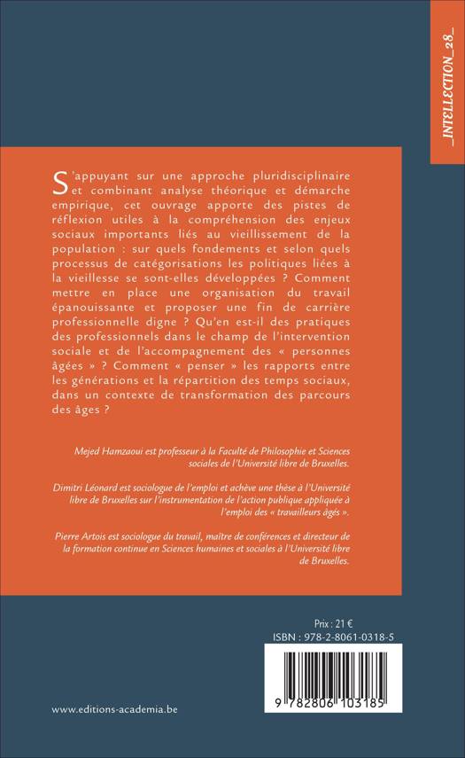 Un ouvrage qui questionne de multiples enjeux liés au vieillissement de la population. Dans une approche pluridisciplinaire et combinant analyse théorique et démarche empirique, les auteurs déclinent ces enjeux autour des politiques publiques, des catégorisations, de l'emploi, du travail, des parcours de vie, des mutations temporelles et des transformations normatives des parcours des âges, des politiques d'intervention sociale, de l'encadrement ou encore de l'autonomie des « personnes âgées ».
