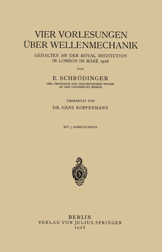 Vier Vorlesungen Über Wellenmechanik, Gehalten an Der Royal Institution in London Im März 1928