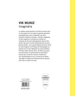 Le célèbre artiste brésilien Vik Muniz revient dans la cité papale huit ans après sa grande exposition monographique pour y présenter une série d'oeuvres inédites en Europe. Intitulée «Imagin»«ária», la série exposée à la Collection Lambert se compose de dix-neuf photographies figurant des saints tels qu'ils ont été représentés par les plus grands artistes : depuis la Sainte Agnès de Simon Vouet au Saint Augustin de Philippe de Champaigne en passant par le Saint Sébastien de José de Ribera. À travers cette nouvelle série, Vik Muniz poursuit ses recherches en questionnant la fascination exercée par les saints à travers l'histoire de leur représentation en art, et vient par là même interroger la relation qu'entretiennent les oeuvres d'art avec la notion de sacré.