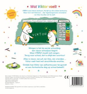 Viktor is een kleine eenhoorn. Hij lijkt op alle andere eenhoorns. Maar toch niet helemaal … Zijn regenboogmanen veranderen van kleur bij alles wat hij voelt. Morgen is het de eerste schooldag: een nieuw schooljaar begint. Maar Viktor maakt zich zorgen. Terug naar school, dat is altijd een avontuur! Alles is nieuw: zijn juf, zijn klas, zijn vriendjes … Viktor voelt heel wat verschillende emoties. Ontdek hoe Viktor zijn zelfvertrouwen terugvindt en een fantastische dag op school beleeft!
