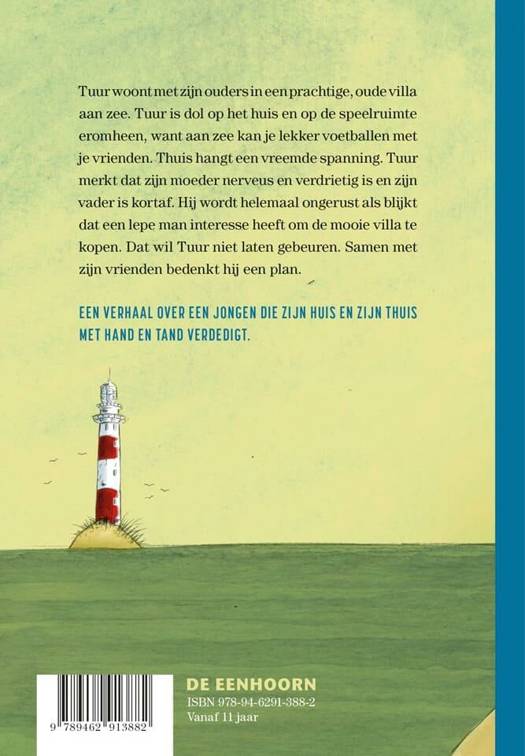 Tuur woont met zijn familie in een prachtige oude villa aan zee. Tuur is dol op het huis en op de speelruimte eromheen, want aan zee kun je echt lekker voetballen met je vrienden. Thuis hangt een vreemde spanning. Tuur merkt dat zijn moeder nerveus en verdrietig is en zijn vader is kortaf. Hij wordt helemaal ongerust als blijkt dat een lepe man interesse heeft om zijn huis, zijn thuis te kopen. Wat is er aan de hand? Tuur zoekt het uit.