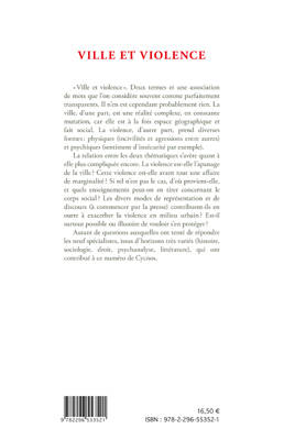 "Ville et violence". La violence est-elle l'apanage de la ville ? Cette violence est-elle avant tout une affaire de marginalité ? Si tel n'est pas le cas, d'où provient-elle, et quels enseignements peut-on en tirer concernant le corps social ? Les divers modes de représentation et de discours (à commencer par la presse) contribuent-ils en outre à exacerber la violence en milieu urbain ? Autant de questions auxquelles ont tenté de répondre les neuf spécialistes qui ont contribué à ce numéro de Cycnos.