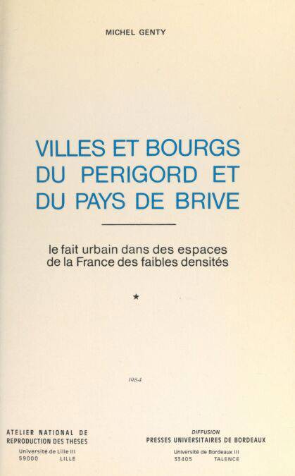 Villes et bourgs du Périgord et du Pays de Brive : le fait urbain dans les espaces de la France des faibles densités (1) EBOOK