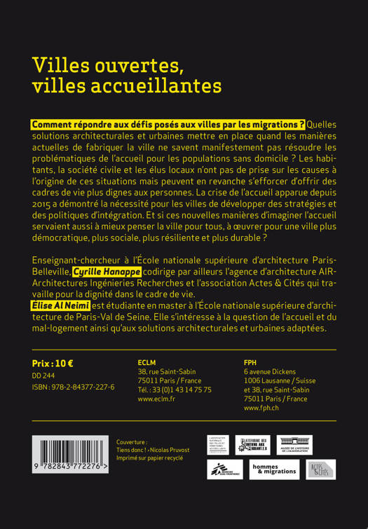 Comment répondre aux défis posés aux villes par les migrations ? Quelles solutions architecturales et urbaines mettre en place quand les manières actuelles de fabriquer la ville ne savent manifestement pas résoudre les problématiques de l'accueil pour les populations sans domicile ? Les habitants, la société civile et les élus locaux n'ont pas de prise sur les causes à l'origine de ces situations mais peuvent en revanche s'efforcer d'offrir des cadres de vie plus dignes aux personnes. La crise de l'accueil apparue depuis 2015 a démontré la nécessité pour les villes de développer des stratégies et des politiques d'intégration. Et si ces nouvelles manières d'imaginer l'accueil servaient aussi à mieux penser la ville pour tous, à oeuvrer pour une ville plus démocratique, plus sociale, plus résiliente et plus durable ?