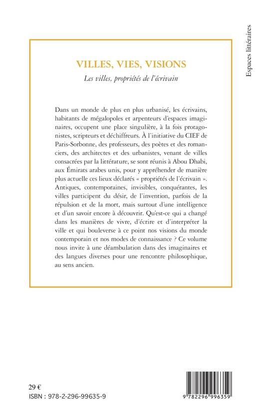 Dans un monde de plus en plus urbanisé, les écrivains, habitants de mégalopoles et arpenteurs d'espaces imaginaires, occupent une place singulière, à la fois protagonistes, scripteurs et déchiffreurs. Le Centre International d'Etudes Francophones de la Sorbonne a réussi lors d'un colloque à Abu Dhabi, des professeurs, romanciers, poètes, architectes et des urbanistes, venant de villes consacrées par la littérature, pour y appréhender de maniène plus actuelle ces lieux déclarés" propriétés de l'écrivain".