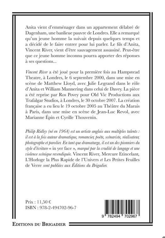 Anita vient d’emménager dans un appartement délabré de Dagenham, une banlieue pauvre de Londres. Elle a remarqué qu’un jeune homme la suivait depuis quelque temps et décide de le faire entrer pour lui parler. Le fils d’Anita, Vincent River, vient d’être sauvagement assassiné. Peut-être que ce jeune homme inconnu pourra apporter des réponses à ses questions…