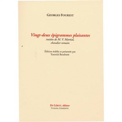Ce recueil, où l'auteur (1867-1945) peut égaler ou surpasser son modèle dans l'ardeur du vocabulaire, réunit douze épigrammes imitées de Martial, parues en 1920, aux Editions de la Connaissance de manière anonyme, et un second ensemble de dix textes jamais publié.