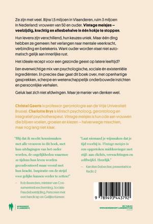 In dit boek staat de mentale kracht van vrouwen van 50 en ouder centraal: een diverse groep van bijna 1,5 miljoen in Vlaanderen en meer dan 3 miljoen in Nederland. Hun levens zijn uniek, maar al deze vrouwen delen een verlangen naar veerkracht, verbinding en betekenis. Ouder worden betekent niet per definitie innerlijke rust, maar juist een zoektocht naar balans tussen psychologische, sociale en existentiële aspecten. Met wetenschappelijk onderbouwde inzichten, persoonlijke verhalen en openhartige gesprekken biedt dit boek handvaten voor het versterken van je geest. Geluk laat zich niet afdwingen, maar je manier van denken wel.