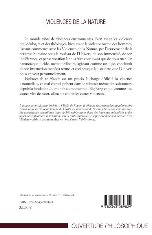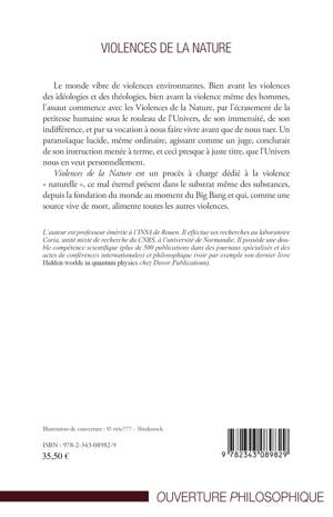 Le monde vibre de violences environnantes. Bien avant les violences des idéologies et des théologies, bien avant la violence des hommes, l'assaut commence avec les violences de la nature, par l'écrasement de la petitesse humaine sous le rouleau de l'univers, de son immensité, de son indifférence. Ce livre est un procès à charge dédié à la violence « naturelle », ce mal éternel présent depuis la fondation du monde.