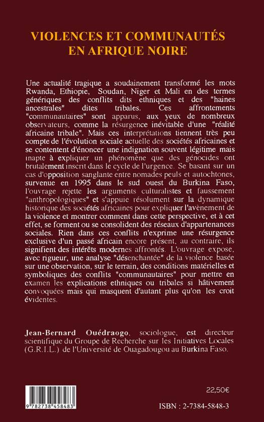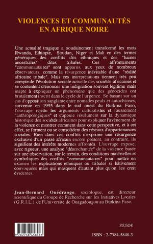 Une actualité tragique a soudainement transformé les mots Rwanda, Ethiopie, Soudan, Niger et Mali en des termes génériques des conflits dits ethniques et des ""haines ancestrales"" dites tribales. L'ouvrage expose, avec rigueur, une analyse ""désenchantée"" de la violence basée sur une observation, sur le terrain, des conditions materielles et symboliques des conflits ""communautaires"" pour mettre en examen les explications ethniques ou tribales si hâtivement convoquées mais qui masquent d'autant plus qu'on les croit évidentes.