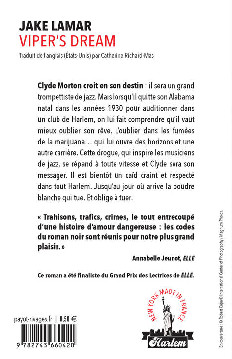 Des années 30 à la fin des années 50, Clyde « Viper » Morton règne sur Harlem au rythme du jazz et dans la fumée des joints de marijuana. Mais dure sera la chute. Clyde Morton croit en son destin : il sera un grand trompettiste de jazz. Mais lorsqu'il quitte son Alabama natal pour auditionner dans un club de Harlem, on lui fait comprendre qu'il vaut mieux oublier son rêve. La drogue, qui inspire les musiciens de jazz, se répand à toute vitesse et Clyde sera son messager. Il est bientôt un caïd craint et respecté dans tout Harlem. Jusqu'au jour où arrive la poudre blanche qui tue. Et qui oblige à tuer. Viper's Dream, qui inaugure la série « New York Made in France », a connu une version radiophonique sur France-Culture, saluée par Télérama.