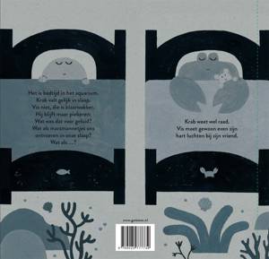 Het eigenwijze prentenboek 'Vis en Krab' neemt lezers mee in een herkenbaar avontuur over piekeren, tobben en het omgaan met deze emoties vlak voor het slapengaan. Maar het is vooral een hilarisch prentenboek vol Bert-en-Erniehumor en humorvolle illustraties. Vis kan maar niet in slaap komen. Hij ligt te piekeren over alle enge dingen die kunnen gebeuren in het donker. Krab ligt al lekker te tukken, maar Vis maakt zich zo druk dat hij het waagt zijn beste vriend wakker te maken. Wat was dat geluid? Was dat een uil? Eten uilen vissen? Wat als marsmannetjes hen ontvoeren in de nacht? Wat als het ineens kikkers begint te regenen? Wat als...? Gelukkig weet Krab zijn vriend gerust te stellen, zodat ze uiteindelijk allebei rustig kunnen gaan slapen. Of toch niet?