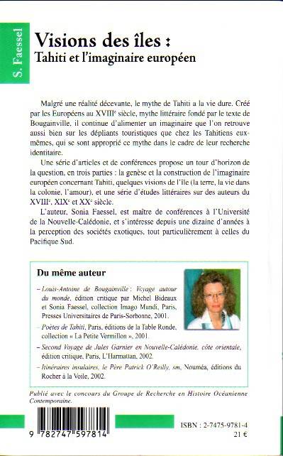 Malgré une réalité décevante, le mythe de Tahiti a la vie dure. Créé par les Européens au XVIIIe siècle, mythe littéraire fondé par le texte de Bougainville, il continue d'alimenter un imaginaire que l'on retrouve aussi bien sur les dépliants touristiques que chez les Tahitiens eux-mêmes, qui se sont approprié ce mythe dans le cadre de leur recherche identitaire. Une série d'articles et de conférences propose un tour d'horizon de la question, en trois parties : la genèse et la construction de l'imaginaire européen concernant Tahiti, quelques visions de l'île et une série d'études littéraires sur des auteurs du XVIIIe, XIXe et XXe siècle.