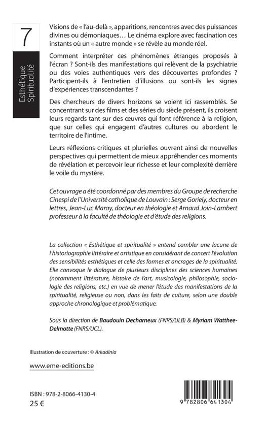 Les visions et les apparitions au cinéma et dans les séries sont nombreuses. Mais que décrivent-elles ? De quel bien ou mal sont-elles le signe ? Que signifient ces instants de révélation ? À quel réel invisible renvoient-elles ? Les différents contributeurs et contributrices de ce volume apportent, selon leur expertise, un éclairage sur un sujet complexe et à beaucoup d'égards énigmatique. Le livre permet ainsi de croiser autant les aspects esthétiques et narratifs qu'anthropologiques et théologiques.