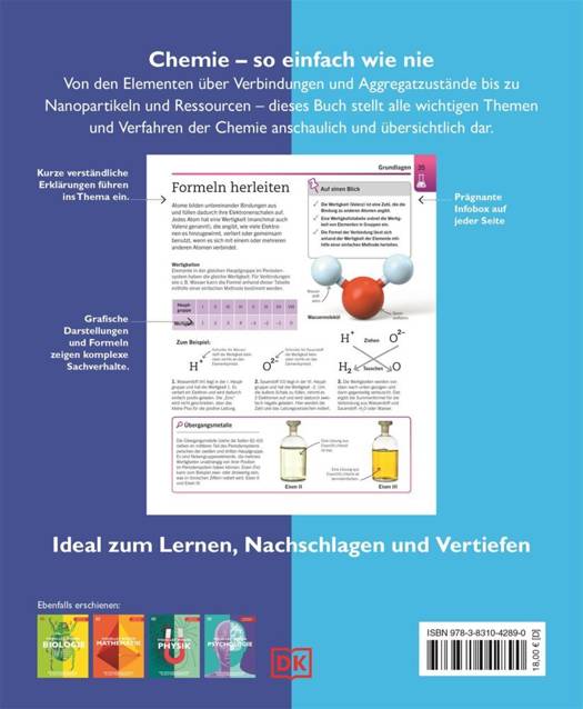 - Chemie visuell erklärt: Woraus besteht ein Molekül? Was bedeutet Titration? Wie funktionieren Hydrogele? Klare Erläuterungen, grafische Darstellungen, Formeln und Berechnungen beleuchten selbst komplexe wissenschaftliche Sachverhalte gut verständlich.