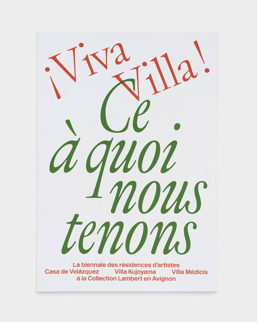 Coédition Dilecta / Collection Lambert / Villa Kujoyama / Villa Médicis / Casa de Velázquez Mise en disponibilité en novembre 2022 Exposition à la Collection Lambert (Avignon) du 12 novembre au 12 février Conçu par la Casa de Velázquez (Madrid), la Villa Kujoyama (Tokyo) et l’Académie de France à Rome – Villa Médicis, le festival ¡ Viva Villa ! est né d’une volonté commune de créer avec le public français un rendez-vous régulier réunissant les artistes accueillis pendant l’année dans ces trois institutions par une exposition, un cycle de films et des spectacles vivants. Le festival conserve sa vocation première depuis sa création en 2016 : offrir au public un état de la jeune création contemporaine, favoriser une transition vers l’après-résidence par des rencontres avec différents acteurs professionnels et construire un réseau amical et artistique. Artistes présentés : Liza Ambrossio, Bianca Argimón, Laía Argüelles, Rudy Ayoun, Iván Castiñeiras, Julien Deprez (accompagné de Claire Vauday), Guillaume Durrieu, Emma Dusong, Francisco Ferro, Silvia Lerín, Clara Marciano, Callisto Mc Nulty, Alessandra Monarcha, Adrian Schindler, Xie Lei ; Carmen Ayala Marín, Najah Albukai, Benjamin Attahir, Chloé Belloc, Maxime Biou, Lise Gaudaire, Julian Lembke, Mathilde Lestiboudois, Anna López Luna, Eve Malherbe, Alberto Martín Menacho, Adrien Menu, Pablo Pérez Palacio, Arnaud Rochard, Mery Sales ; Alice Dusapin, Adila Bennedjaiï-Zou (accompagnée d’Azzedine Saleck et de sa fille Ima Saleck), Noriko Baba, Estefania Peñafiel Loaiza (accompagnée d’Alexis Moreano Band), Coralie Barbe, Clément Périssé et Alice Grégoire, Simon Boudvin (accompagné de Valeria Giuga et de leur fils Dario), Georges Senga, Jacques Julien, Mathilde Denize, Fernando Garnero, Félix Jousserand, Kaouther Adimi, Hèctor Parra, Iván Argote, Charlie Aubry, Theodora Barat, Nidhal Chamekh, Aude Fourel, Marta Gentilucci, Benoît Maire, Samir Boumediene, Noémie Goddard, Evangelia Kranioti, Marielle Macé, Julie Pellegrin, Mathieu Peyroulet Ghilini, Guy Régis Jr. ; Bady Dalloul, Marcus Borja, Alexandre Balgiu, Krikor Kouchian, Anne-Sophie Turion et Éric Minh Cuong Castaing, Céline Pelcé, Flore Falcinelli, Sacha Hourcade et Natacha Poutoux