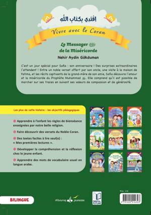 Immergez-vous dans l’univers chaleureux et lumineux de Safia et de sa famille, où chaque jour est l’occasion d’apprendre et de grandir. À travers les petits gestes quotidiens, cette série de 10 livres bilingues guide les enfants vers une compréhension douce et inspirante de valeurs essentielles comme le respect, la générosité, et l’amour familial, le tout éclairé par la sagesse des versets coraniques : 10- Le Messager (saw) de la MiséricordeC’est un jour spécial pour Safia : son anniversaire ! Des surprises extraordinaires l’attendent ! Entre un noble verset offert par son oncle, une visite à la maison de Fatima, et les récits captivants de la grand-mère de son amie, Safia découvre l’amour et la miséricorde du Prophète Muhammad (saw). Elle comprend qu’il est possible de marcher sur ses traces en suivant ses valeurs de compassion et de générosité.Autres épisodes : 1- Apprendre à s’aimer les uns les autres2- La Confiance : une grande responsabilité 3- La Bienfaisance : les mains du cœur 4- Le Trésor de la Patience5- Main dans la main : Fraternité et amour6- Donner c'est aimer 7- Le Temps, un cadeau précieux8- Des Conseils pour grandir ensemble9- Ne juge pas trop vite : Évite la médisance