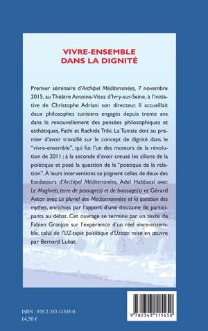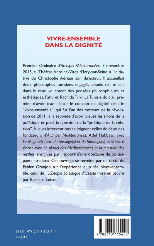 Cet ouvrage rassemble les interventions du premier séminaire d'Archipel Méditerranées, qui a eu lieu en novembre 2015 au Théâtre Antoine-Vitez d'Ivry-sur-Seine. Parmi les invités, Fathi et Rachida Triki, qui travaillent sur le renouvellement des pensées philosophiques et esthétiques, mais aussi Adel Habbassi et Gérard Astor. Vivre-ensemble, poétique de la relation, Maghreb terre de passage(s) et de brassage(s), le pluriel des Méditerranées et la question des mythes, voici les thèmes abordés par une douzaine de participants au débat.