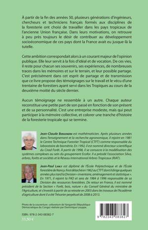 À partir de la fin des années 50, plusieurs générations d'ingénieurs, chercheurs et techniciens français formés aux disciplines de la foresterie ont choisi de travailler dans les pays tropicaux de l'ancienne Union française. Cette ambition était à la fois un idéal et une vocation. C'est dans un esprit de partage et de transmission que ce livre propose des témoignages sur le travail et le vécu d'une trentaine de forestiers ayant servi dans les Tropiques au cours de la deuxième moitié du siècle dernier.