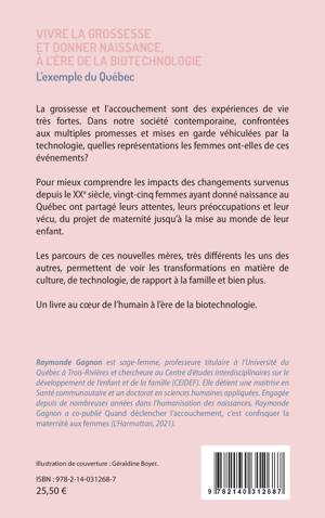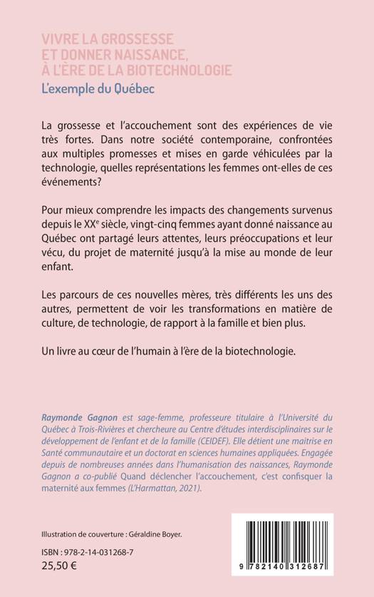 La grossesse et l'accouchement sont des expériences de vie très fortes. Dans notre société contemporaine, confrontées aux multiples promesses et mises en garde véhiculées par la technologie, quelles représentations les femmes ont-elles de ces événements? Pour mieux comprendre les impacts des changements survenus depuis le XXe siècle, vingt-cinq femmes ayant donné naissance au Québec ont partagé leurs attentes, leurs préoccupations et leur vécu, du projet de maternité jusqu'à la mise au monde de leur enfant. Les parcours de ces nouvelles mères, très différents les uns des autres, permettent de voir les transformations en matière de culture, de technologie, de rapport à la famille et bien plus. Un livre au cœur de l'humain à l'ère de la biotechnologie.