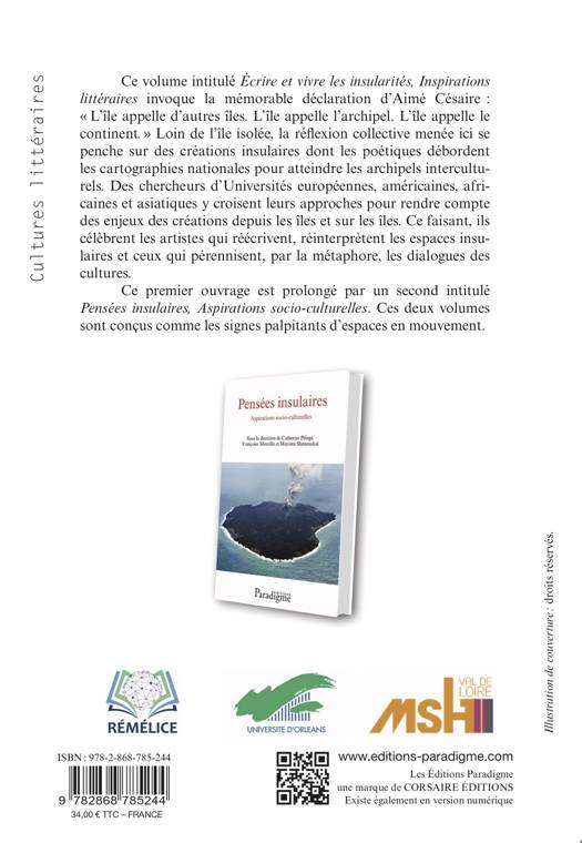 Ce volume intitulé Écrire et vivre les insularités, Inspirations littéraires invoque la mémorable déclaration d’Aimé Césaire : « L’île appelle d’autres îles. L’île appelle l’archipel. L’île appelle le continent ». Loin de l’île isolée, la réflexion collective menée ici se penche sur des créations insulaires dont les poétiques débordent les cartographies nationales pour atteindre les archipels interculturels. Des chercheurs d’Universités européennes, américaines, africaines et asiatiques y croisent leurs approches pour rendre compte des enjeux des créations depuis les îles et sur les îles. Ce faisant, ils célèbrent les artistes qui réécrivent, réinterprètent les espaces insulaires et ceux qui pérennisent, par la métaphore, les dialogues des cultures.