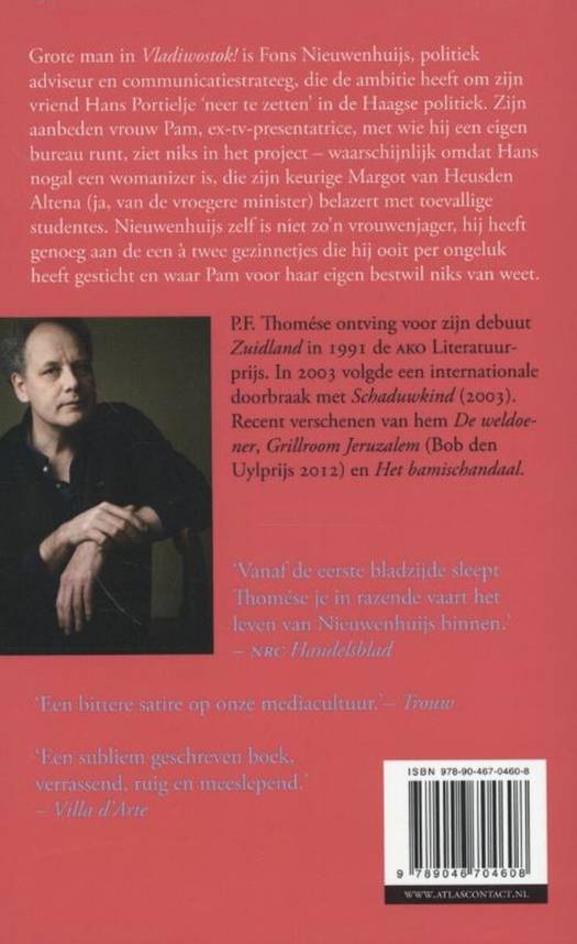 Grote man in Vladiwostok! is Fons Nieuwenhuijs, politiek adviseur en communicatiestrateeg, die de ambitie heeft om zijn vriend Hans Portielje ‘neer te zetten’ in de Haagse politiek. Zijn aanbeden vrouw Pam, ex-tv-presentatrice, met wie hij een eigen bureau runt, ziet niks in het project – waarschijnlijk omdat Hans nogal een womanizer is, die zijn keurige Margot van Heusden Altena (ja, van de vroegere minister) belazert met toevallige studentes. Nieuwenhuijs zelf is niet zo’n vrouwenjager, hij heeft genoeg aan de een à twee gezinnetjes die hij ooit per ongeluk heeft gesticht en waar Pam voor haar eigen bestwil niks van weet.
