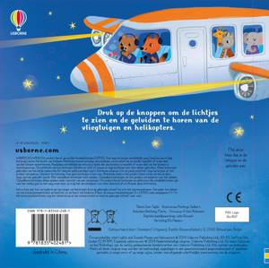 Van een ouderwets vliegtuig dat opstijgt tot een helikopter die over een klif scheert: in dit boekje vind je allerlei spannende vliegende machines… en als je op de knop op de bladzijde drukt, hoor je ze en gaan de lichtjes aan. De grappige dierenpiloten laten een watervliegtuig veilig landen, sturen een groot straalvliegtuig door de wolken en een stuntvliegteam laat een spectaculaire show zien.