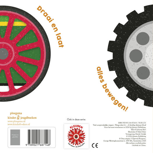Dit kleurrijke kartonboek is leuk om mee te spelen, samen met je baby of peuter. Op elke spread vind je een draaiende spinner. Perfect voor de ontwikkeling van de fijne motoriek van jonge kinderen, en hun visuele waarneming. De woorden zijn eenvoudig, en de tekst is op rijm. Het contrastrijke ontwerp spreekt de allerkleinsten aan. In dezelfde serie is ook een boek over Kleuren verschenen. Samen lezen was nog nooit zo interactief!