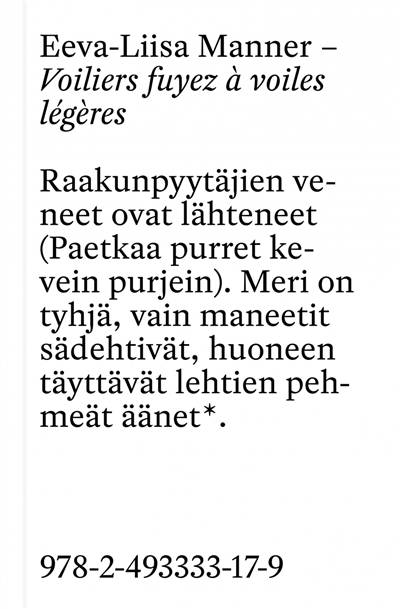 Ce sont les derniers mots, les deux derniers recueils de la poétesse finlandaise Eeva-Liisa Manner, dont l’œuvre s’aperçoit ici de façon inédite en langue française, à l’horizon fuyant de son propre achèvement.
