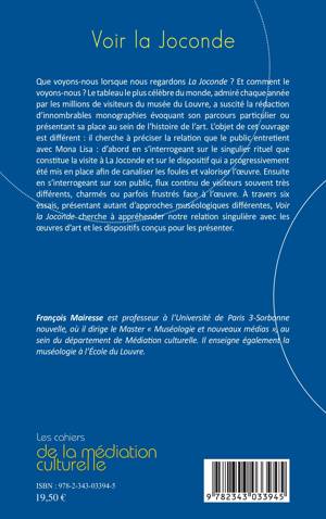 Que voyons-nous lorsque nous regardons La Joconde ? L'ouvrage cherche à préciser la relation que le public entretient avec Mona Lisa: d'abord en s'interrogeant sur le singulier rituel que constitue la visite à La Joconde et sur le dispositif qui a été mis en place afin de canaliser les foules et valoriser l'œuvre. Ensuite en s'interrogeant sur ses publics multiples. Quelle est au final notre relation singulière avec les oeuvres d'art et les dispositifs conçus pour les présenter ?