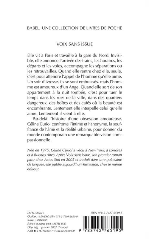 Par-delà l'histoire d'une obsession amoureuse, Céline Curiol confronte l'intime et l'anonyme, la souffrance de l'âme et la réalité urbaine, pour donner du monde contemporain une remarquable vision compassionnelle.