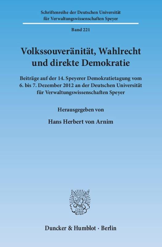 Umfragen deuten darauf hin, dass immer mehr Menschen das Gefühl haben, die wichtigsten politischen Entscheidungen würden über ihre Köpfe hinweg getroffen. Dies gibt Anlass zur Sorge, denn die Abkoppelung der Bürger von den politischen Entscheidungsprozessen droht die Demokratie auszuhöhlen. Vor diesem Hintergrund widmete sich die 14. Demokratietagung, die Anfang Dezember 2012 in Speyer stattfand, den Möglichkeiten einer verstärkten Partizipation von Bürgern. Diskutiert wurden Probleme, die bis in den Kern unseres politischen Systems reichen: Die Umgestaltung des Bundestagswahlrechts, die Beseitigung der Sperrklausel bei deutschen Europawahlen, Erfahrungen mit der direkten Demokratie in den Bundesländern und die Möglichkeit, diese auf die Bundesebene zu übertragen, die Direktwahl von Ministerpräsidenten sowie Probleme bei der Besetzung von Richterstellen. Es referierten namhafte Persönlichkeiten aus Politik, Wissenschaft, Judikative und den Medien. Ihre zum Teil erheblich erweiterten Referate sind in diesem Band abgedruckt.